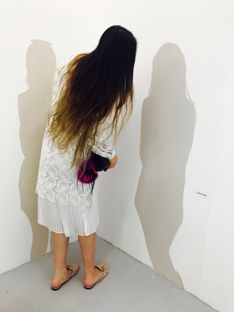 “Trapped with Shadows,” presents a thought-provoking exploration of identity, presence, and absence. By painting my own human shadows on the wall, I create a hauntingly beautiful interaction where the shadows become the focal point, inviting viewers to engage with the idea of what it means to be “present” without a physical form.